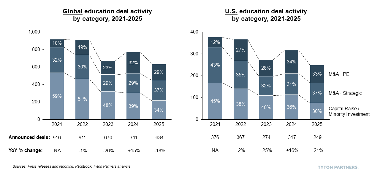 *Tyton Partners tracks education sector transaction activity through various public and proprietary sources. All announced deals are reviewed to ensure accuracy of data and alignment with methodologies developed across more than a decade of monitoring the landscape.