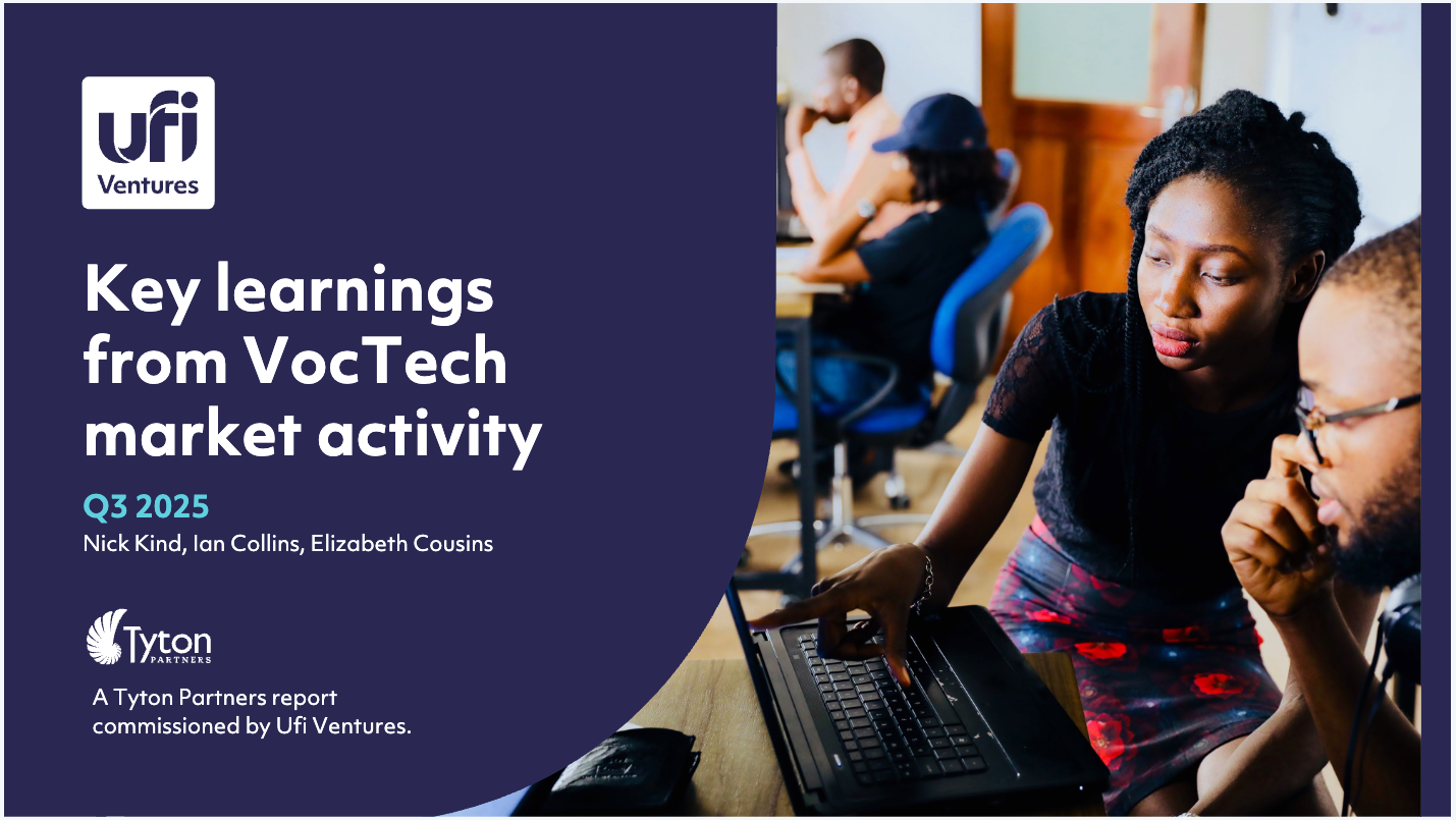 Ufi Ventures and Tyton Partners continue their joint analysis of the vocational technology landscape with the Q3+ 2025 VocTech Market Report, which tracks key trends through October. This quarter was marked by major UK policy developments, ongoing debate about an AI-driven investment bubble, and a series of notable acquisitions that signal continued confidence in the sector despite low overall deal volume.